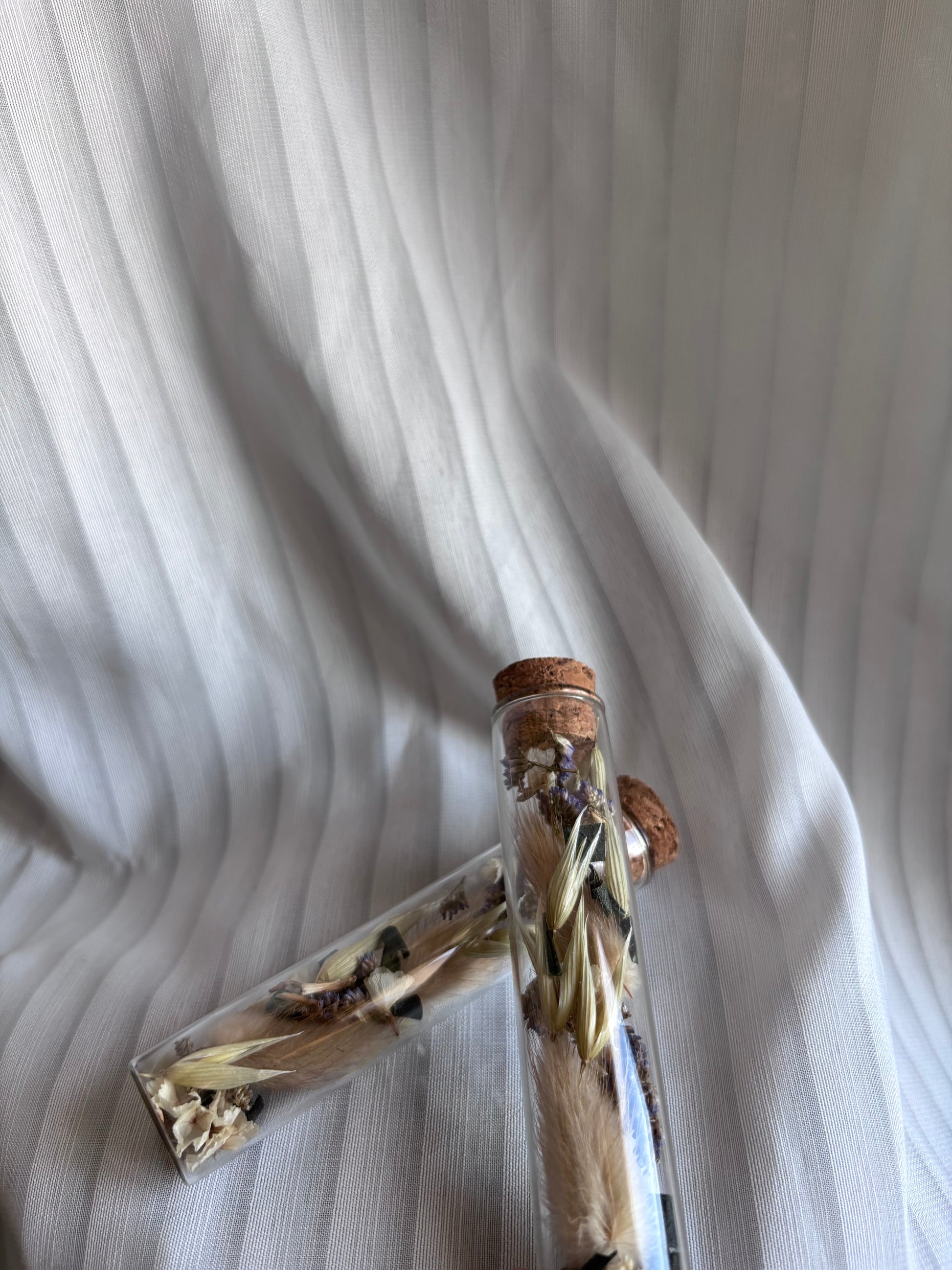 ✨ Chaque pièce est unique : la composition, la sélection de fleurs et les teintes peuvent légèrement varier selon les fleurs disponibles, rendant chaque fiole authentique et singulière.